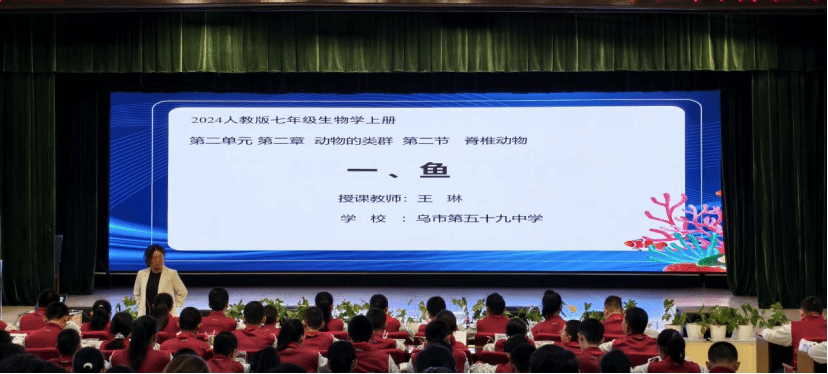 此次乌鲁木齐市初中生物学教师十月教研活动,首先是由乌鲁木齐市第59中学的王琳老师与兵团二中的魏佳媛老师进行的七年级上册第二单元第二章第二节《鱼》的讲课。其中王琳老师在课堂导入环节巧妙引入赛里木湖“水怪”传闻,随即抛出“怎样才能拍到水怪”的探究性问题。有学生结合课题思路,提出设计 “鱼”型水下仿生机器人的方案,整节课便以此为核心主线,围绕“鱼”型水下仿生机器人的设计逻辑展开教学。魏佳媛老师创设 “活鱼配送方案设计” 的实践情境,推动学生运用所学知识解决实际问题,深化科学思维与探究能力,让学生切实体会生物知识服务生活的价值。最后,结合《渔业法》科普与鱼类保护现状介绍,组织学生设计生态保护宣传海报,有效增强了学生的生态保护社会责任意识。